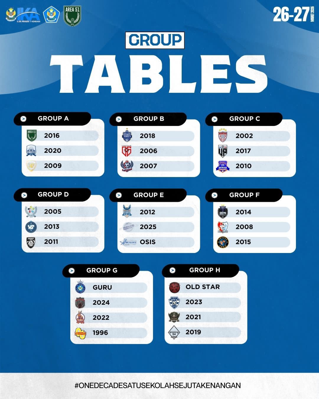 Grup D dihuni angkatan 2005, 2013, dan 2011. Sementara Grup E menghadirkan angkatan 2012, 2025, serta tim OSIS. Grup F terdiri dari angkatan 2014, 2008, dan 2015. Di Grup G terdapat tim guru bersama angkatan 2024, 2022, dan 1996. Sedangkan Grup H diisi tim Old Star, angkatan 2023, 2021, dan 2019.