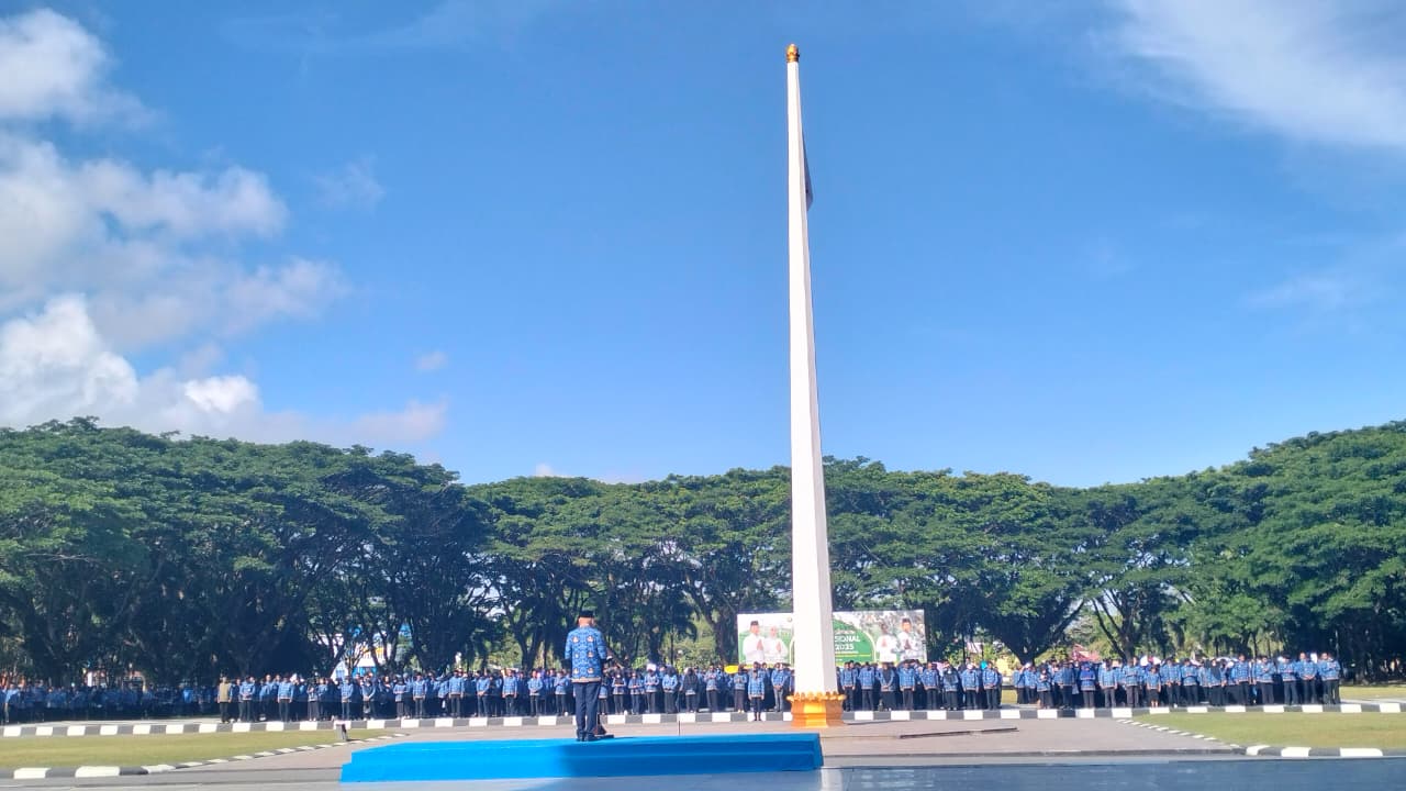 TERAMEDIA.ID, KENDARI – Upacara Hari Kesadaran Nasional di Halaman Kantor Gubernur Sulawesi Tenggara, Jumat (17/10/2025), menjadi momentum refleksi kedisiplinan dan integritas bagi Aparatur Sipil Negara (ASN). Sekretaris Daerah Provinsi Sulawesi Tenggara, Drs. Asrun Lio, M.Hum., Ph.D., menegaskan pentingnya menanamkan disiplin dari hal kecil—termasuk sikap hormat saat lagu Indonesia Raya berkumandang.