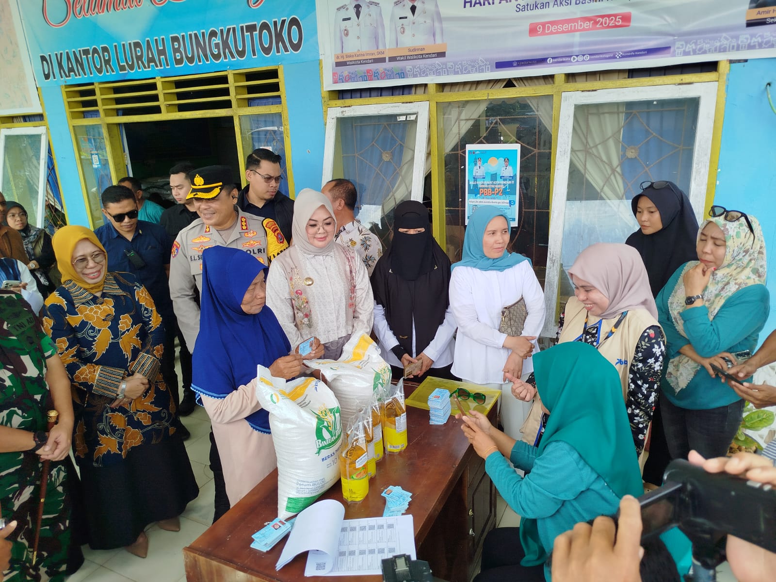 Wali Kota Kendari, Siska Karina Imran, hadir langsung dalam kegiatan tersebut untuk memastikan penyaluran berjalan tepat sasaran. Ia juga memantau proses verifikasi penerima manfaat yang dilakukan petugas Perum Bulog di lokasi.