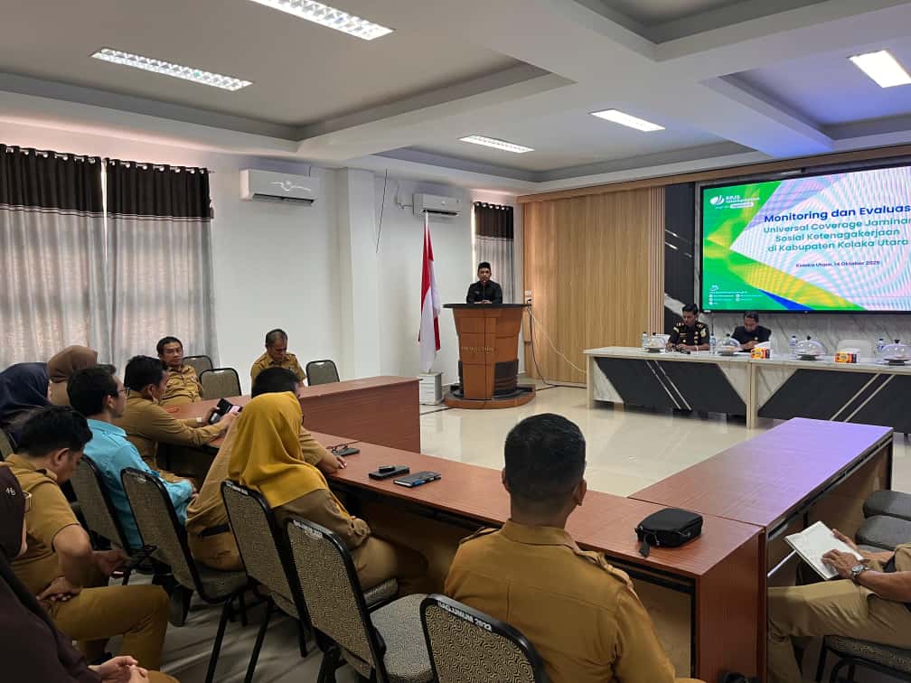 TERAMEDIA.ID.KOLAKA.UTARA – BPJS Ketenagakerjaan Kolaka Raya bersama Pemerintah Kabupaten Kolaka Utara mengadakan acara Monitoring dan Evaluasi Implementasi Jaminan Sosial Ketenagakerjaan Universal Coverage Jamsostek (UCJ) Tahun 2025 di Aula Kantor Bupati, Selasa (14/10/2025).
