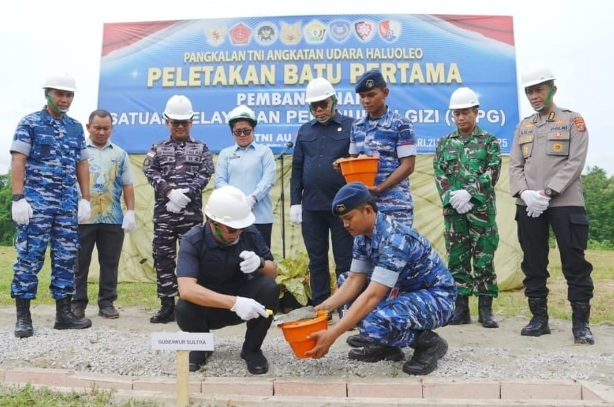 TERAMEDIA.ID, KONSEL — Gubernur Sulawesi Tenggara, Andi Sumangerukka (ASR), meletakkan batu pertama pembangunan Dapur Satuan Pelayanan Pemenuhan Gizi (SPPG) Lanud Halu Oleo di Konawe Selatan, Jumat (21/11/2025). Proyek ini menjadi bagian dari perluasan layanan gizi terpadu untuk mendukung program pencegahan stunting dan peningkatan kualitas kesehatan masyarakat.