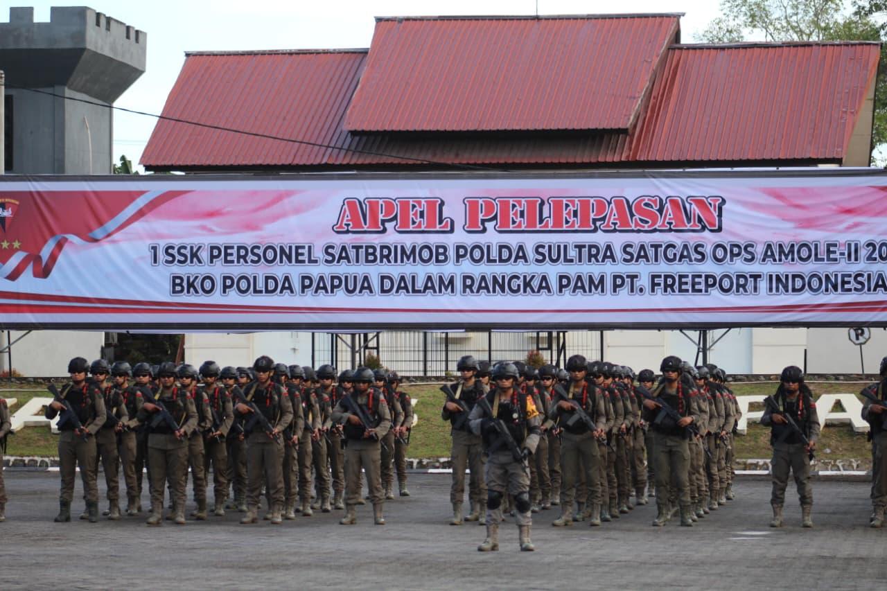 Apel berlangsung di Lapangan Apel Sat Brimob Polda Sultra dan diikuti para Pejabat Utama (PJU) Polda Sultra, Wadansat Brimob, serta seluruh personel yang terlibat dalam misi pengamanan tersebut.
