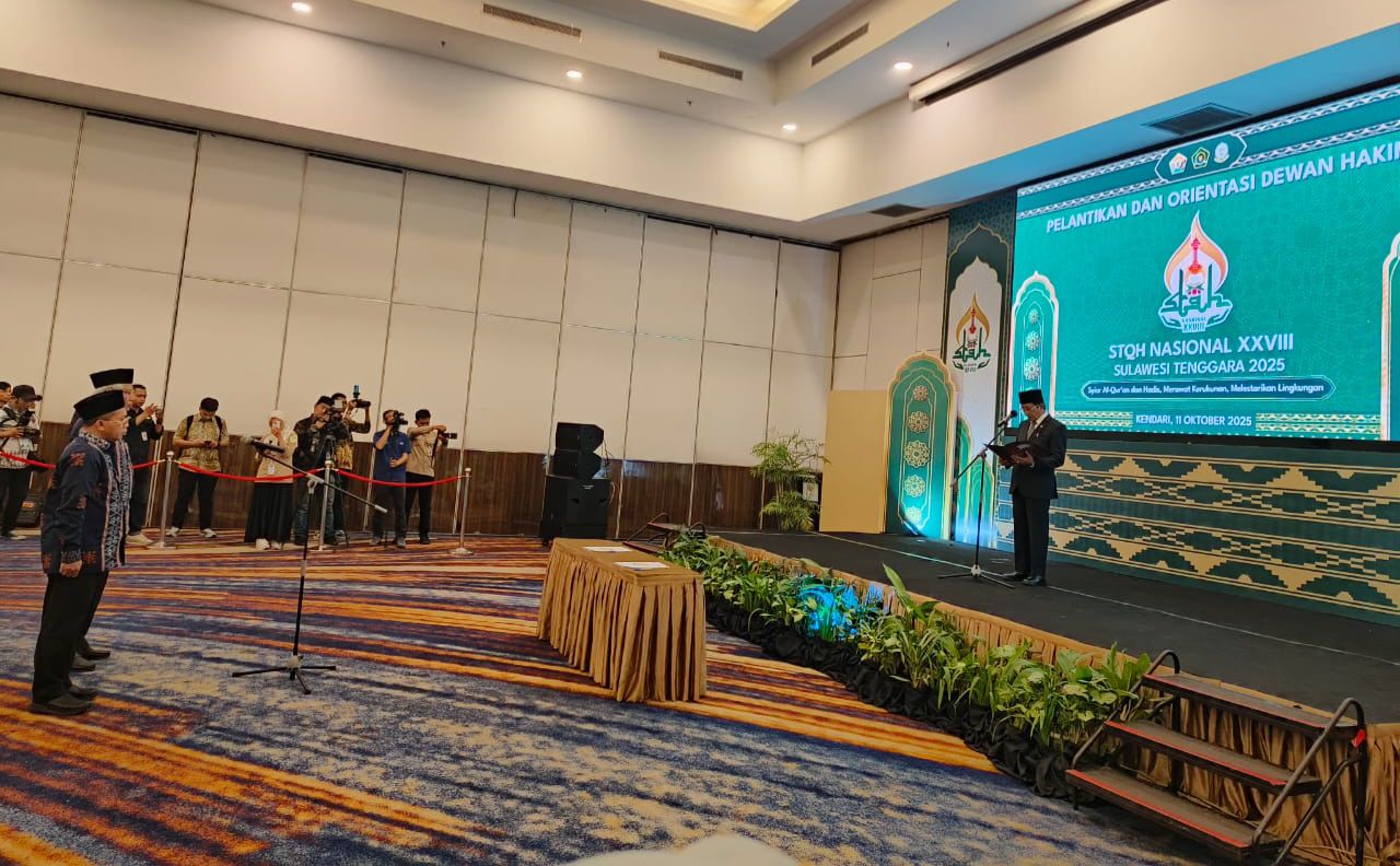 KENDARI, TERAMEDIA.ID – Menteri Agama (Menag) Republik Indonesia (RI), Nasaruddin Uma melantik Dewan Pengawas dan Dewan Hakim Seleksi Tilawatil Quran dan Hadis (STQH) Nasional XXVIII yang digelar di salah satu hotel di Kendari, Sulawesi Tenggara (Sultra), pada Sabtu (11/10/2025).
