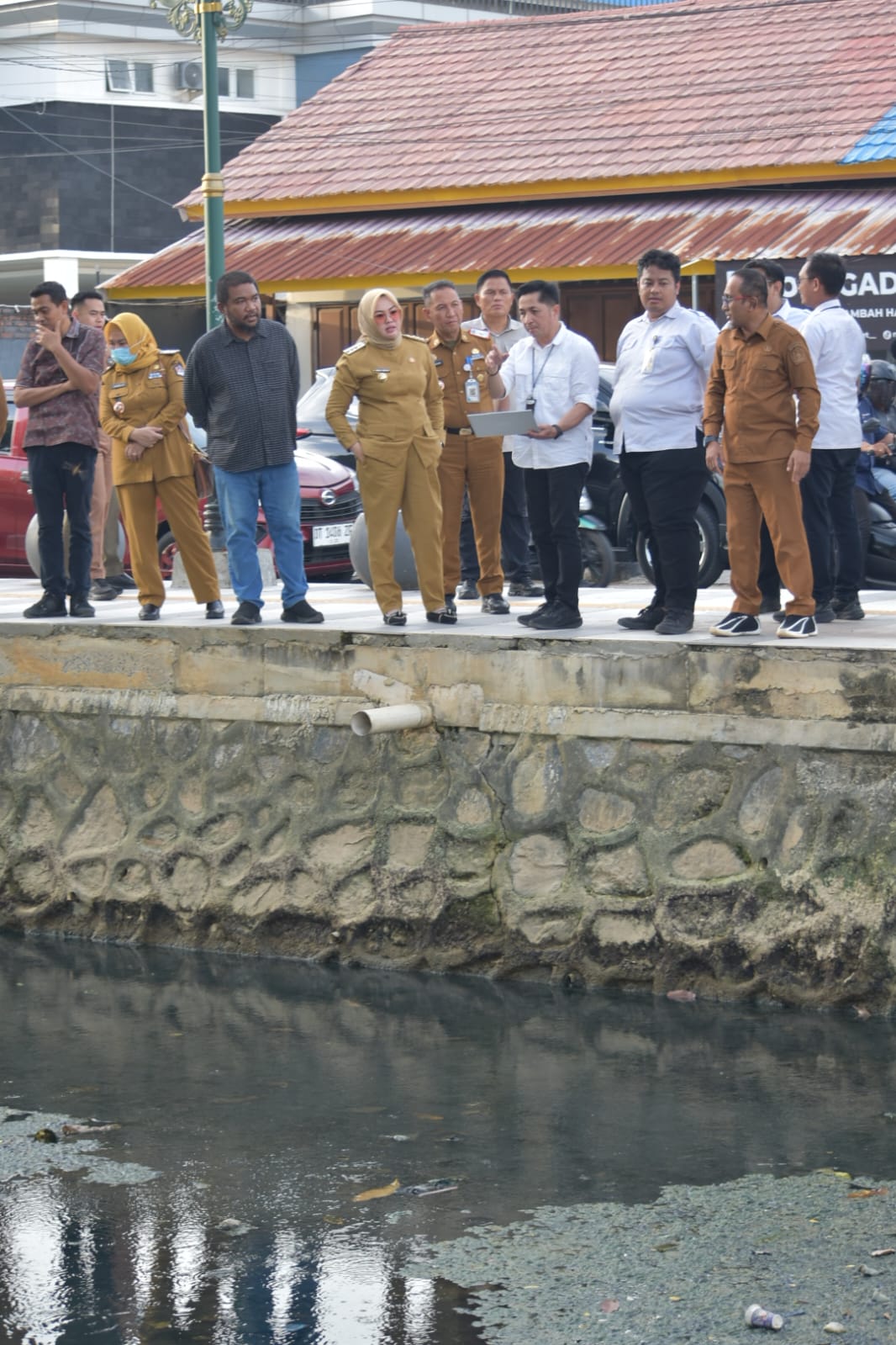 Langkah ini ditandai dengan turunnya langsung Wali Kota Kendari, Siska Karina Imran, ke sejumlah titik aliran sungai, Senin (13/4/2026). Didampingi jajaran teknis, mulai dari Sekda, Kepala Bappeda, Plt Kadis PUPR hingga Kasat Pol PP, Wali Kota meninjau kondisi Kali Korumba yang mengalami penyempitan signifikan.
