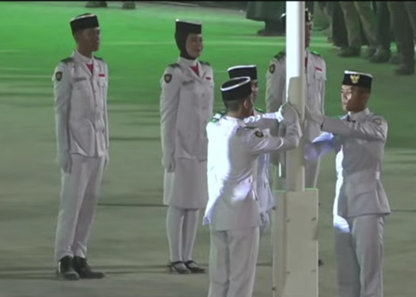 Momen tersebut semakin berkesan dengan penampilan kompak dari Pasukan Pengibar Bendera (Paskibra) Provinsi Sulawesi Tenggara.