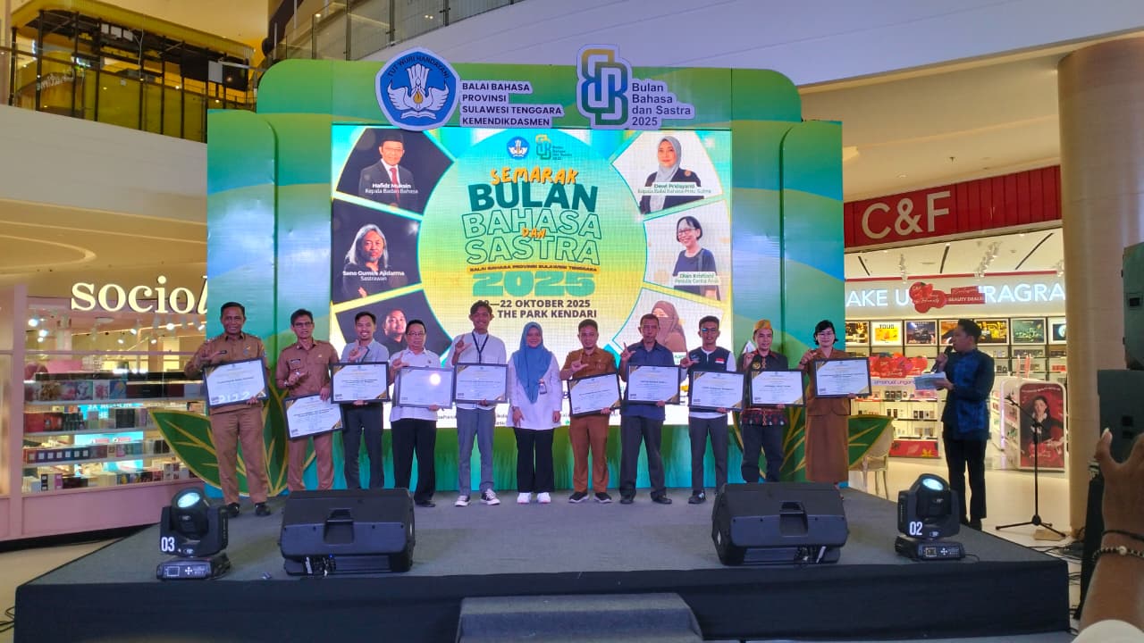 TERAMEDIA.ID, KENDARI – Semarak Bulan Bahasa dan Sastra 2025 resmi dibuka oleh Sekretaris Daerah Provinsi Sulawesi Tenggara, Drs. Asrun Lio, M.Hum., Ph.D., di Mall The Park Kendari, Senin (20/10/2025). Acara yang digelar oleh Balai Bahasa Provinsi Sulawesi Tenggara ini mengangkat tema “Bahasa Indonesia Berbalas Indonesia Maju”, sebagai pengingat bahwa bahasa adalah cermin kemajuan bangsa dan perekat keberagaman.