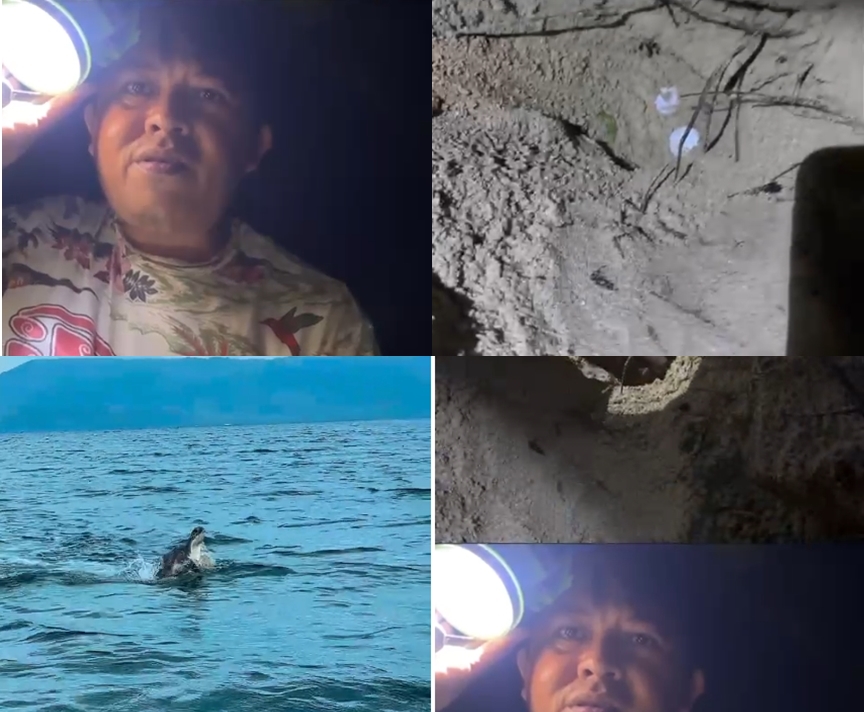 ” beberapa titik ada bekas galian, ada bekas kulit telur yang sudah menetas, dan yang terakhir ini kami temukan lubang bertelur dan telurnya masih lengkap didalam, sehingga kami pemerintah desa dan warga sepakat untuk memproteksi area tempat bertelur, sambil kami menyusuri lagi titik-titik yang diduga pernah menjadi tempat bertelur penyu. Kami masih mengidentifikasi jenis penyu yang ada di kawasan kami. Sesekali jika naik perahu didalam desa saja kami temukan penyu naik bermain ke permukaan air.” ujar nikson (25/11/2025).