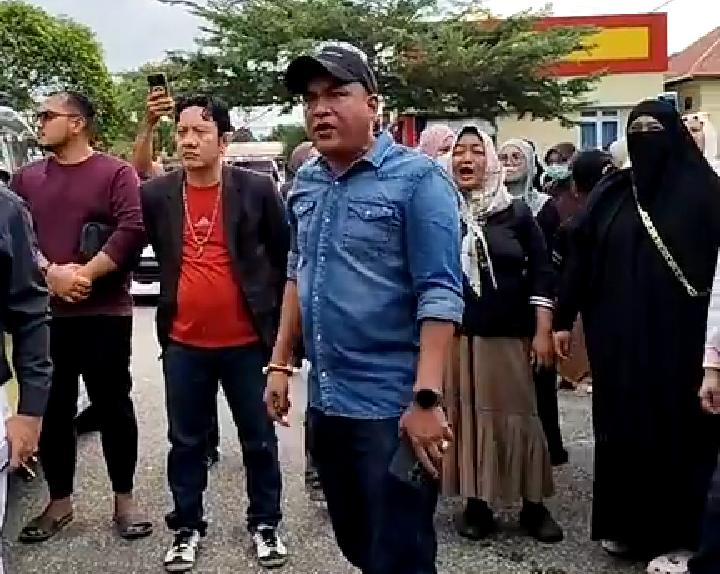 ” suruh dia (Owner PT. TRG) keluar dari Polres, karena hak nya kita mau ketemu dia, karena ada haknya orang dalam penguasaannya. Tadi dia tidak mau menemui kami, pertanyaannya kenapa dia tidak mau ketemu?, trus kenapa dia didalam polres, dia minta perlindungan di dalam Polres, ada apa ini. Saya minta teman-teman polisi juga, jangan orang yang diduga melakukan pelanggaran hukum, dilindungi di dalam (kantor polresta Kendari). “. teriak Supriadi dihadapan kepolisian.
