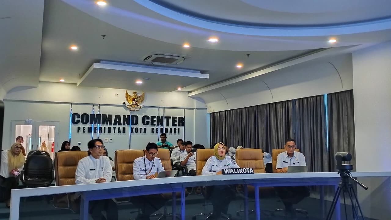 Dari Command Center Balai Kota Kendari, Wali Kota Kendari bersama tim Bappeda dan Bagian Pemerintahan turut mengikuti jalannya rapat guna memastikan kesiapan daerah dalam pelaksanaan program tersebut.